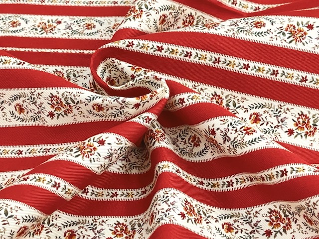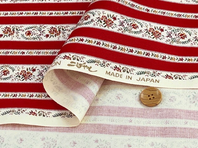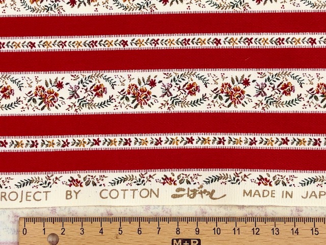 コットンツイルプリント コットンこばやし アンティーク風ストライプフラワー