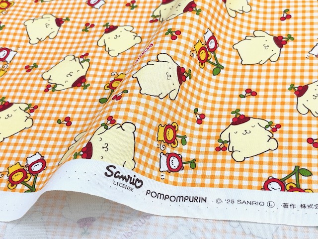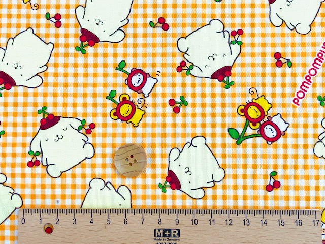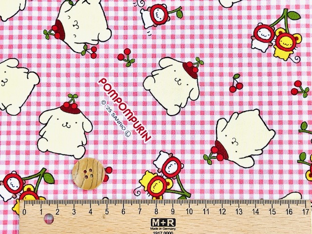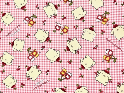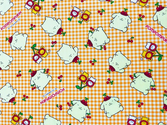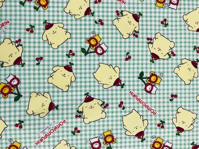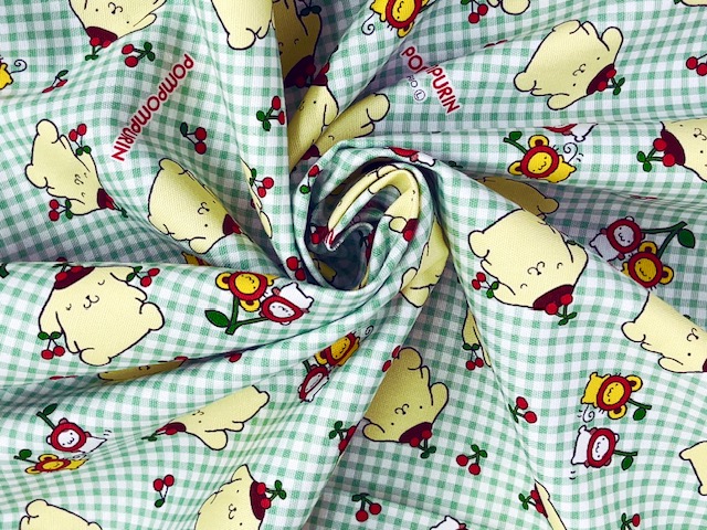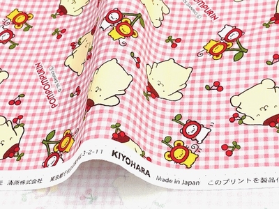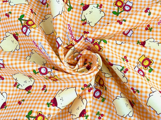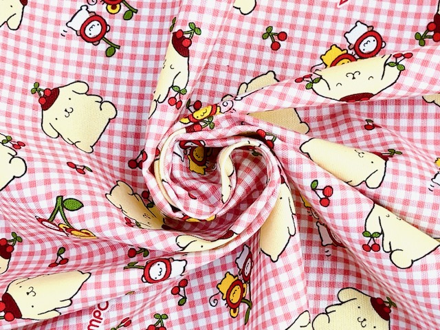 ポイント10倍! コットンオックスプリント生地 プムポムプリンチェック柄