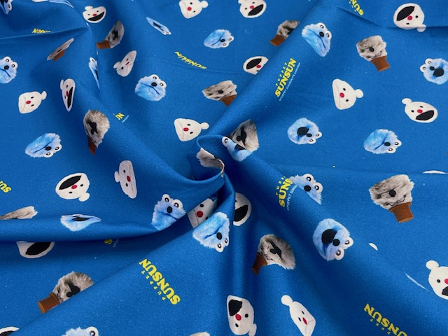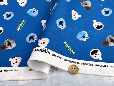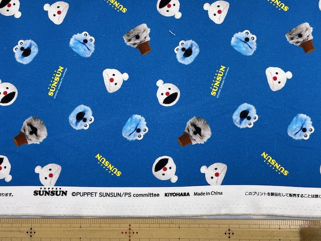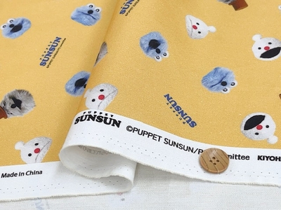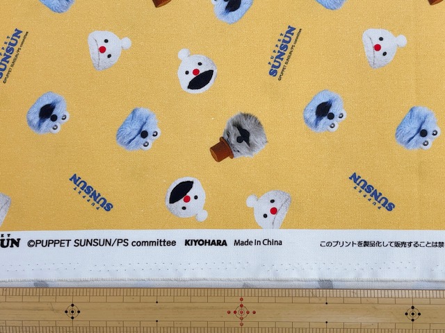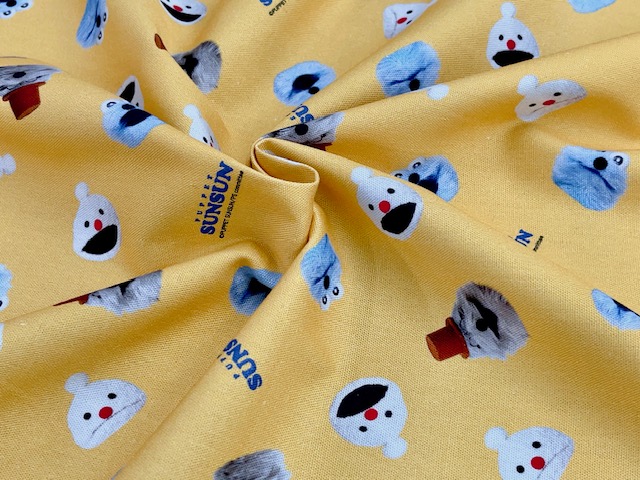 ポイント10倍! 綿オックスプリント生地 パペットスンスンフェイス柄 PSNF-03