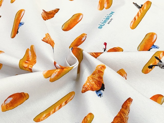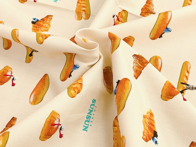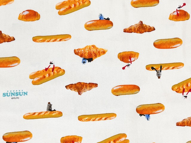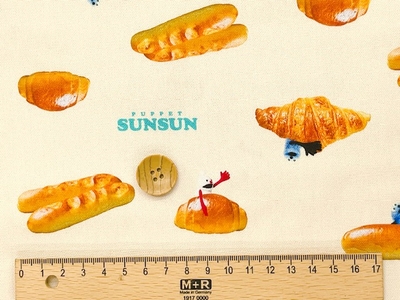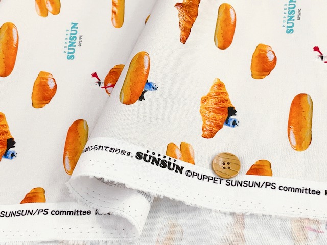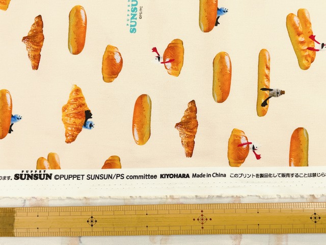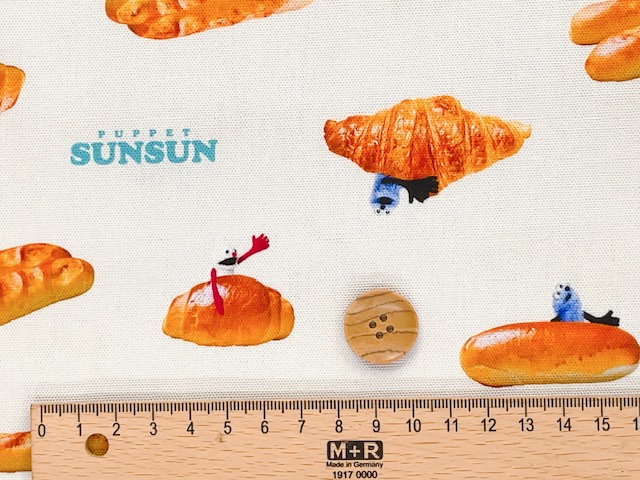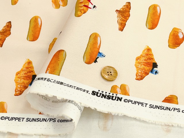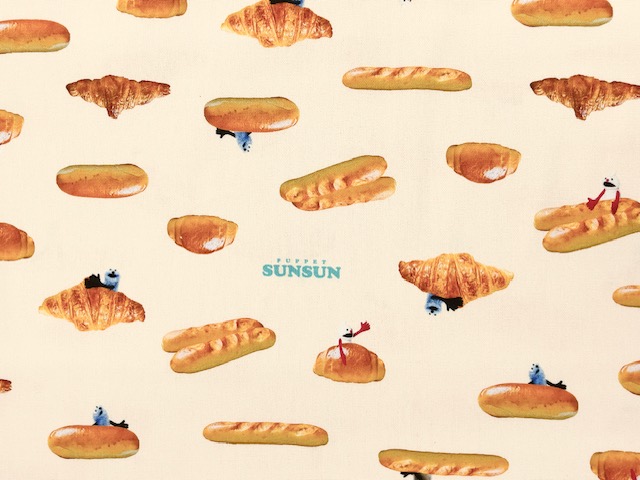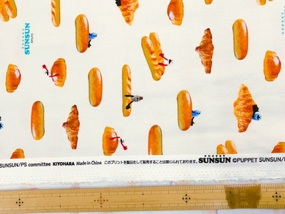 ポイント10倍! 綿オックスプリント生地 パペットスンスン パン柄 PSNF-02