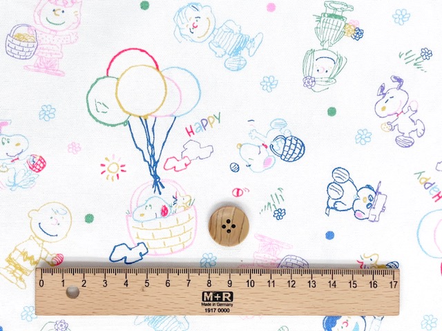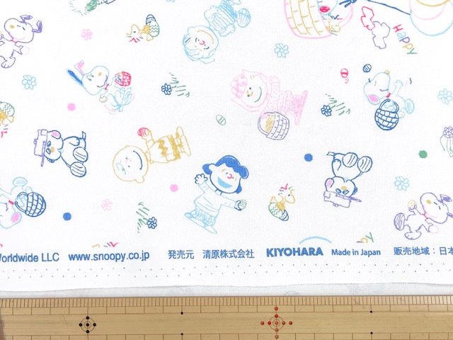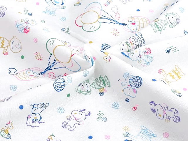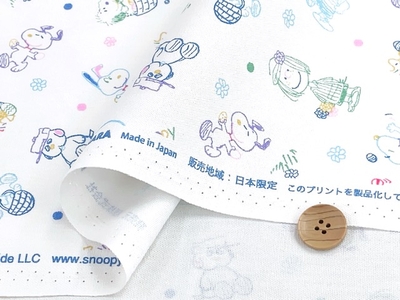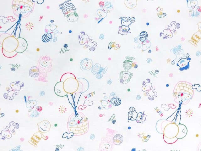 ポイント10倍! 綿オックスプリント生地 スヌーピー ピーナッツ ビブラントアウトライン柄